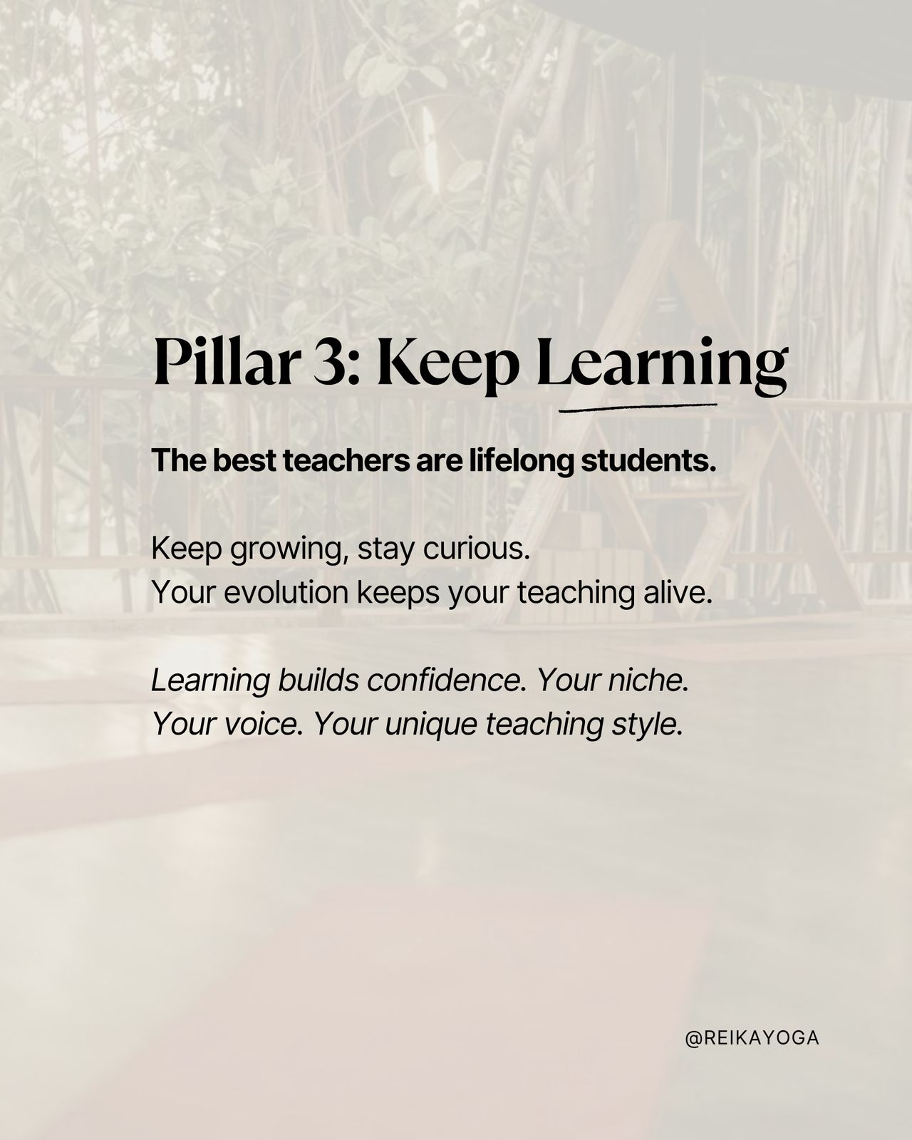I want to share something really close to my heart: the three pillars I believe make someone a solid, reliable, and impactful yoga teacher. Now that I am about a decade into my full-time yoga teaching career, I get asked a lot from in my mentorship program for yoga teachers and new teachers about how to get better at teaching. These reflections are rooted in my own journey, what I’ve learned from experience, and what I’ve seen in this industry over the years.